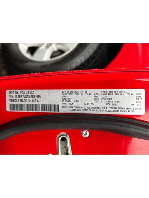 Flame Red Clearcoat 2021 Ram 1500 Classic SLT 4WD 8-Speed Automatic 3.6L V6 24V VVT Bluetooth®, Fully Detailed and Serviced, Air Conditioning, Alloy wheels, Compass, Electronic Stability Control, Heated door mirrors, ParkView Rear Back-Up Camera, Power windows, Radio: Uconnect 3 w/5 Display.